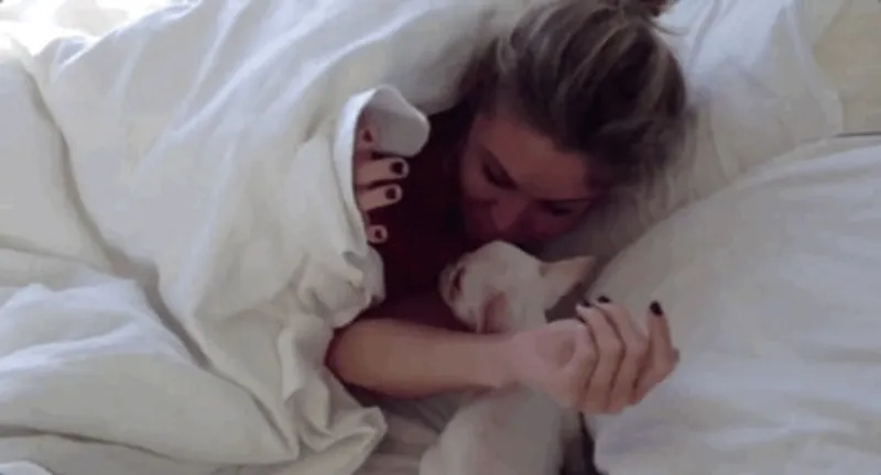 Typically, people wake up with an alarm sound. But that can be annoying and frustrating in the morning. This is why we envy the lives of people with pets. That is because they have their pets to wake them up. If you don’t believe it, take a look at this picture again. This little pup woke his mommy by keeping his paw on her chest and kissing her sweetly. Although they mostly do it when they want you to give them food, it works well for waking you up for work. A fluffy pet is a lot better than a noisy alarm.