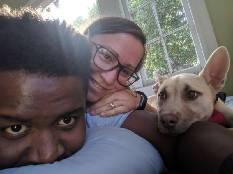 This adorable girl found her new home after the animal control service took her in Detroit. After that, she was taken to an adoption event in the city, where she found Kasey Blauwkamp (pictured right). He and his fiancé fell in love with Cora and decided to take her in. They couldn’t learn much about the dog. However, the organization did let them know that Cora had a few children before. The best part is that this mamma dog got more partners when she reached home. That is because her guardians had three cats and another dog as a pet too.