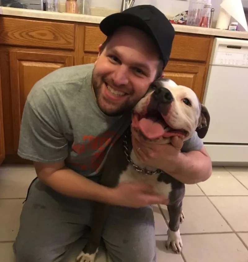 We love it when people name their pets uniquely. Here in this picture, we have Fluke for you. The man on the left is his dad, who adopted him in 2017. Fluke is also a rescue and lived at the shelter. While we don’t know his backstory, it is not a happy one. Anyways, this pit bull suffered from the stereotype of passing over until this man came to the shelter. He saw the loving nature of Fluke and got attached to him in the first meeting. Now, the dog is well and living happily with his dad.