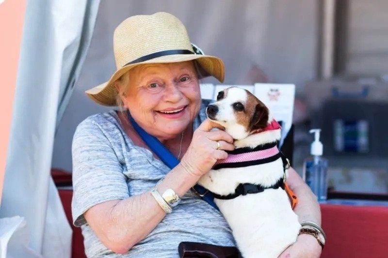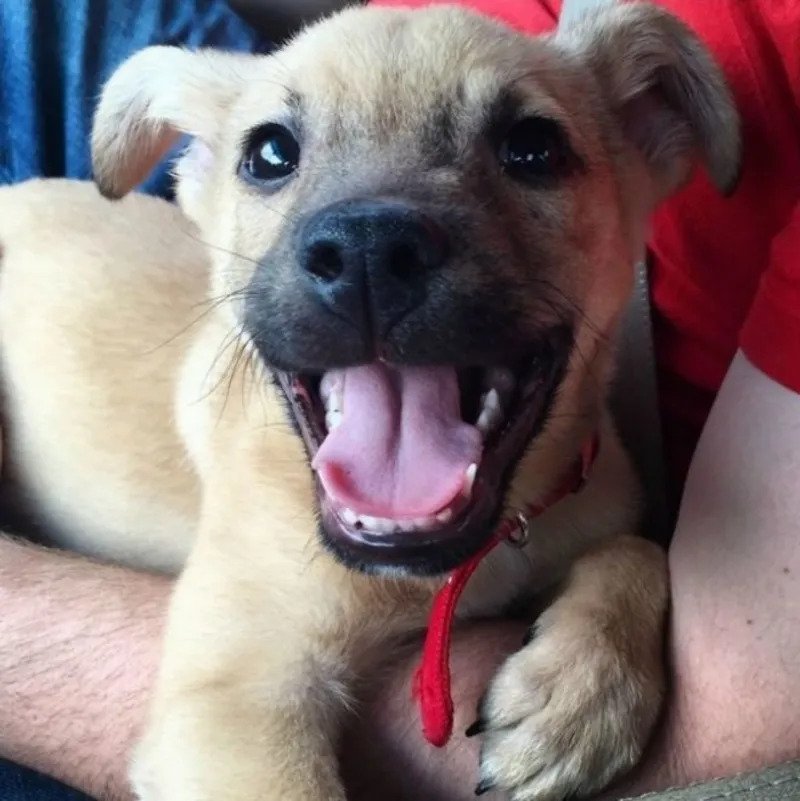 This picture was taken at an adoption event. A rescue organization held the event to help different pets get a new home. It was a joyful day for many animals and humans alike. The highlight of the day was this little guy getting a new mom. He had been rescued for some time but faced difficulties finding a home. That is why he was delighted when this lady spotted him. Of course, the organization asked the woman to hold the dog to make sure that the pup was comfy. Once she did, the dog burst into smiles, and this became his life’s best day.