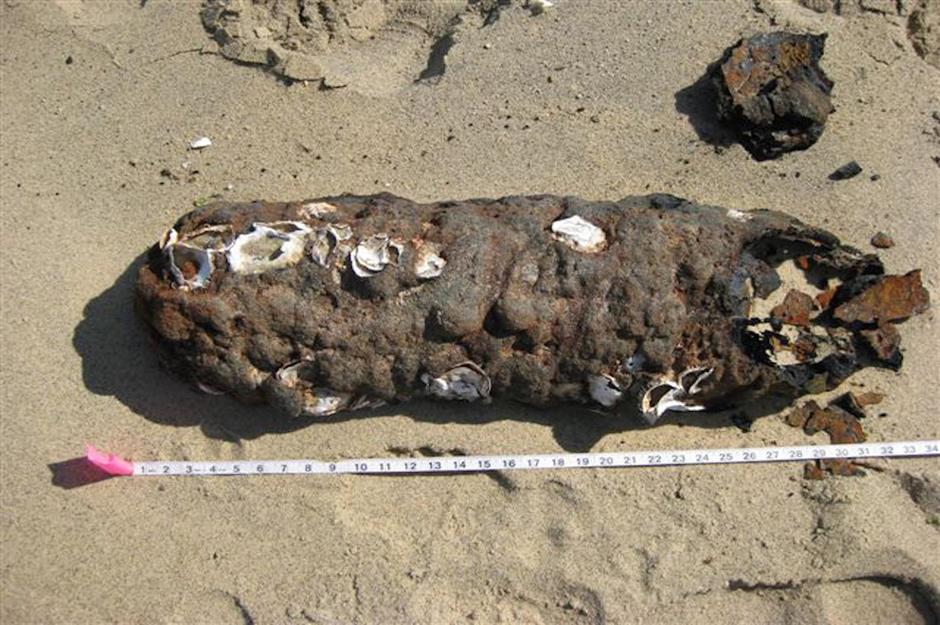 Yes, unexploded bombs have washed up on the beaches many times in various parts of the world. This particular unexploded bomb was found in Massachusetts, the USA, in 2009 on one of the beaches on Martha’s Vineyard. It was a rusted aerial bomb that was being tested during World War II.