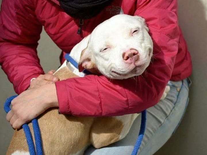 Dogs love it when their owners shower kisses on them. That is why this rescue dog looks so pleased in this picture. His name is Stitch, and he used to live at a shelter in her vicinity. The woman wanted to make the life of a rescue pet better. Of course, she also wanted a companion to be there for her when she came home after a tiring day of work. Stitch quickly grabbed her attention, and before you knew it, he was adopted. Showering kisses on him is the first thing this woman after holding him. She was lucky enough to have someone capture this moment.