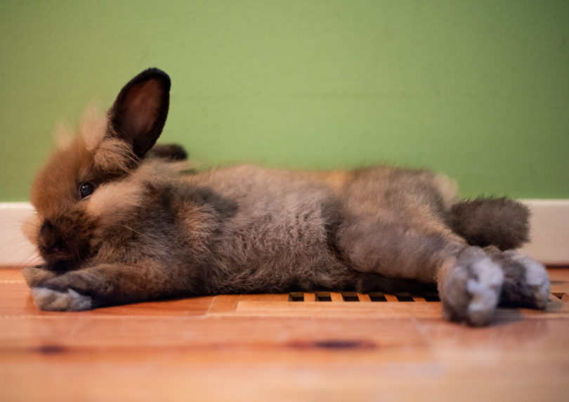Handle your rabbit carefully since they have fragile backbones. When you pick them up, put one hand under its hind legs for support and the other just below their chest to lift. The entire weight of your pet rabbit needs to rest on your hands. Never allow small children to pick them up by their ears or front paws as it may cause irreversible damage to the rabbit’s spine, even death.