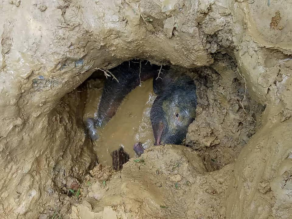 The baby elephant was stuck inside the ditch, and there was no space to move upwards. However, this wasn’t all. There was mud at the bottom of the ditch that made things even worse. It made it even harder for the baby elephant to move inside the ditch.